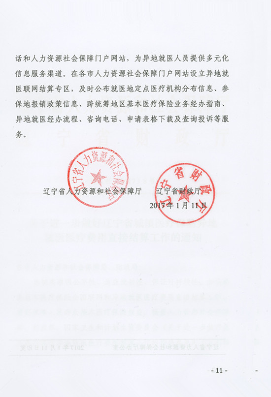 关于进一步做好辽宁省城镇医疗保险异地就医医疗费用直接结算工作的通知辽人社[2017]8号